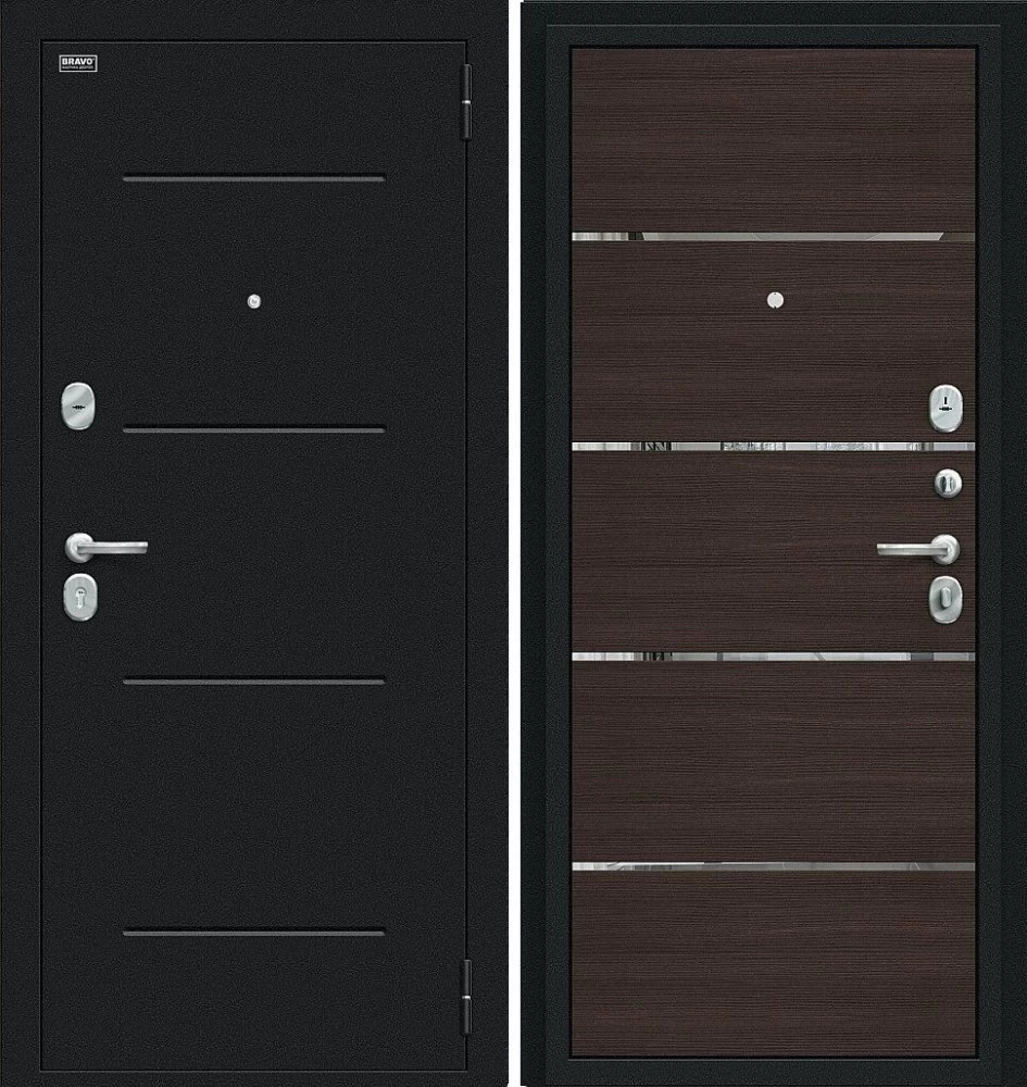 Надежная входная Дверь Браво Лайн Букле черное/Wenge Veralinga премиум класса по цене 30 117 руб. Большая толщина стали защитит от проникновения в ваш дом, квартиру или коттедж. Используется очень качественная фурнитура: замки, цилиндры, ручки, защелки. Покрытие и отделка двери изготовлено под внимательным контролем производителя. Дверь имеет долгий срок службы и гарантию.
