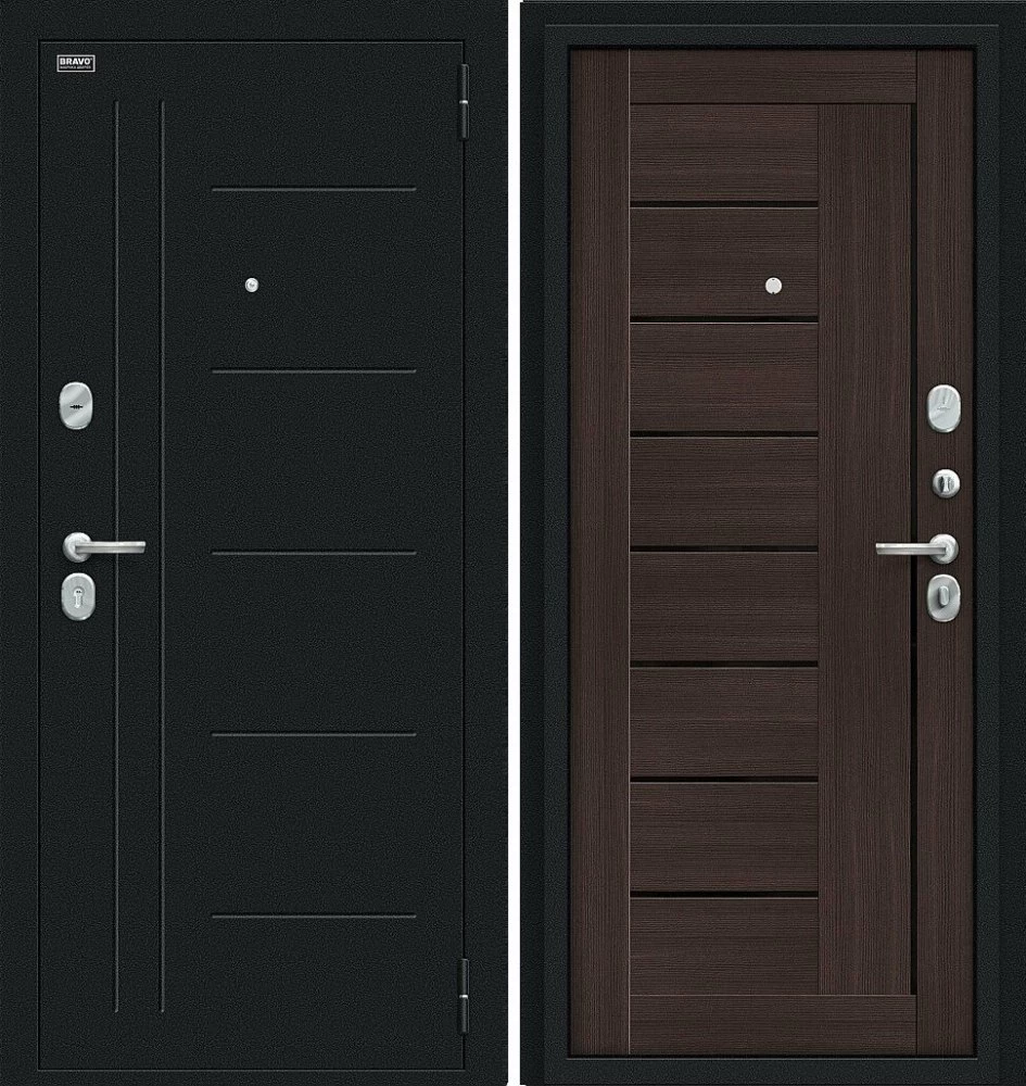 Надежная входная Дверь Браво Проф Букле черное/Wenge Veralinga премиум класса по цене 33 147 руб. Большая толщина стали защитит от проникновения в ваш дом, квартиру или коттедж. Используется очень качественная фурнитура: замки, цилиндры, ручки, защелки. Покрытие и отделка двери изготовлено под внимательным контролем производителя. Дверь имеет долгий срок службы и гарантию.
